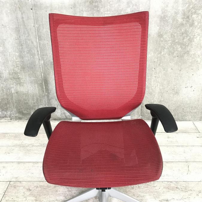 【まとめて揃います!】【肘付オフィスチェア】オカムラ(okamura)バロンチェア メッシュ仕様 ■色:レッド 座面メッシュ 可動肘