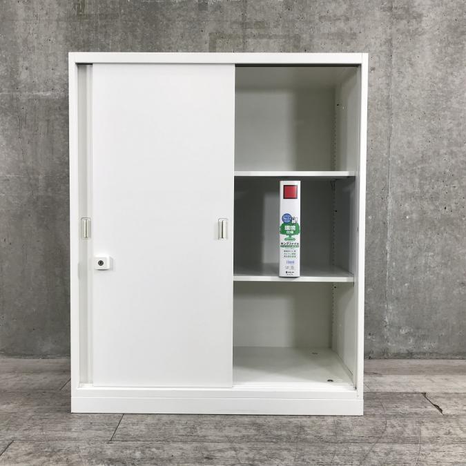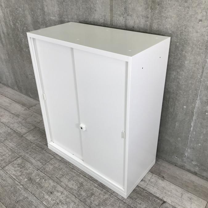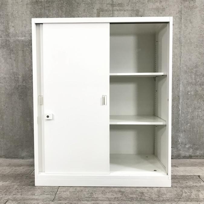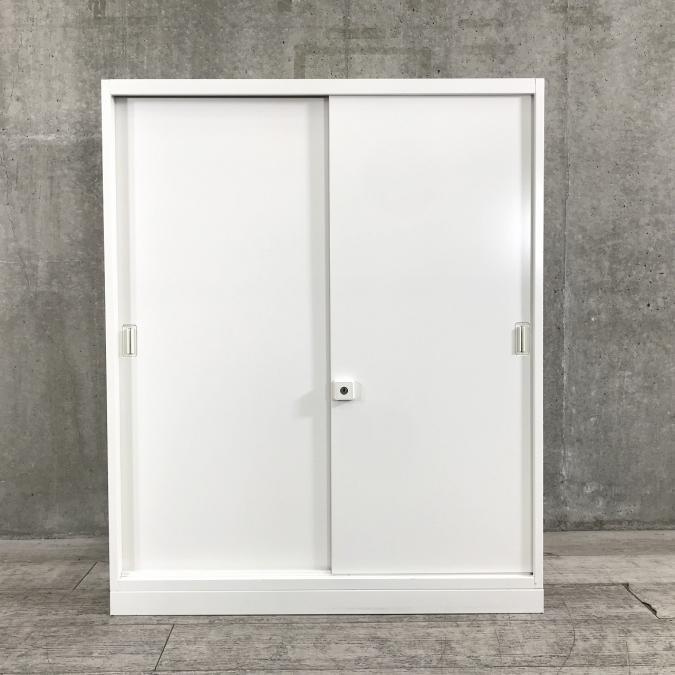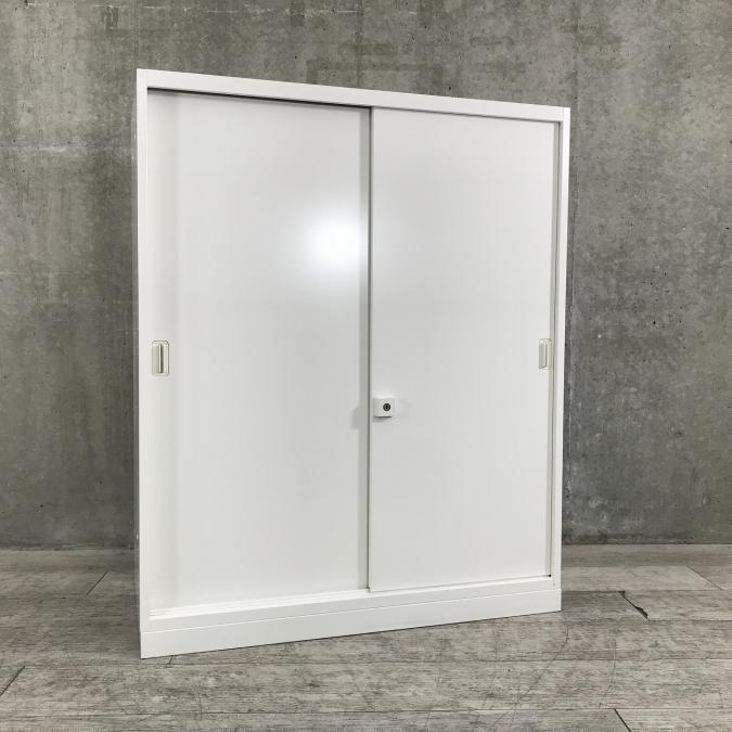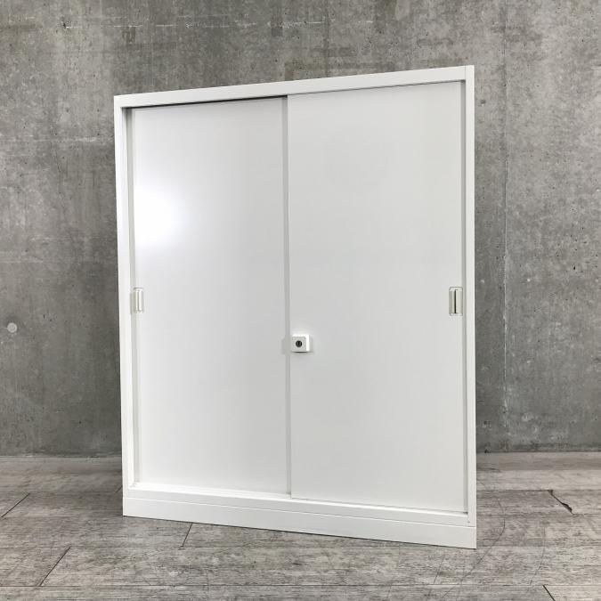 スライド式の扉のため導線を邪魔しません!使い勝手抜群の2枚引き違い書庫が入荷! ■オカムラ/レクトライン/ホワイト 2枚引き戸