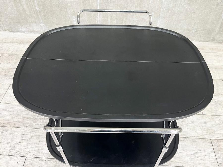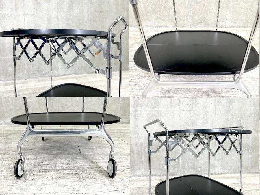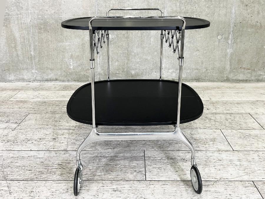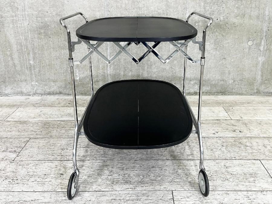 プラスチックのトップにクローム仕上げのスチールフレームのコンビネーションがモダンな折り畳み式ワゴン。