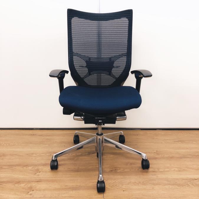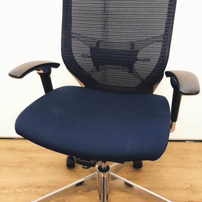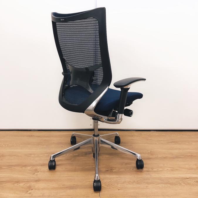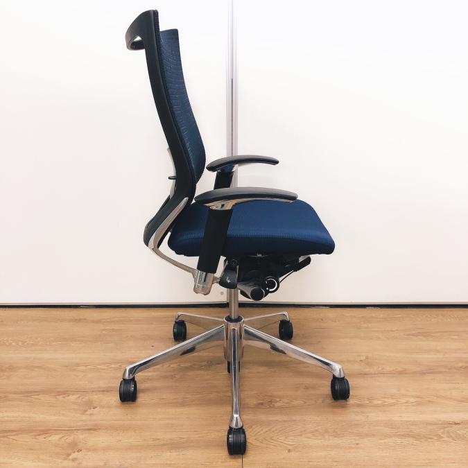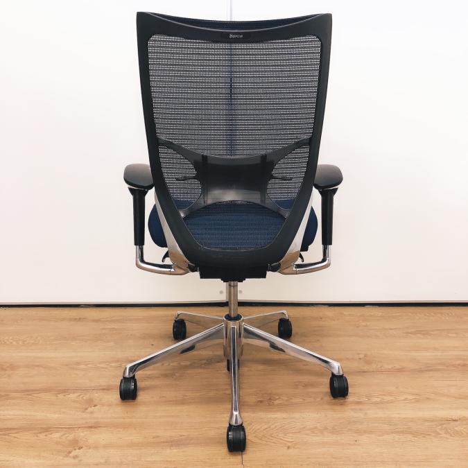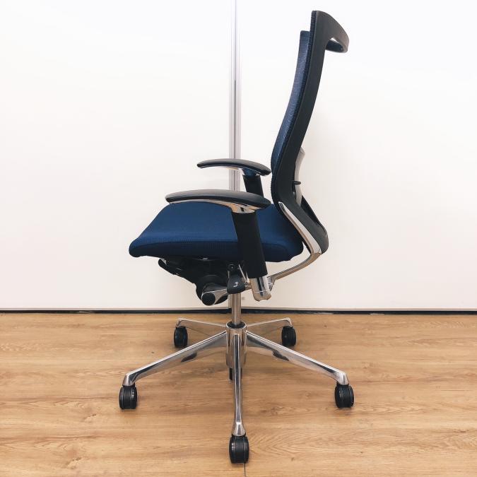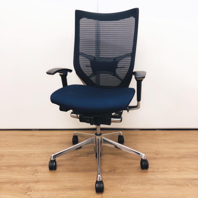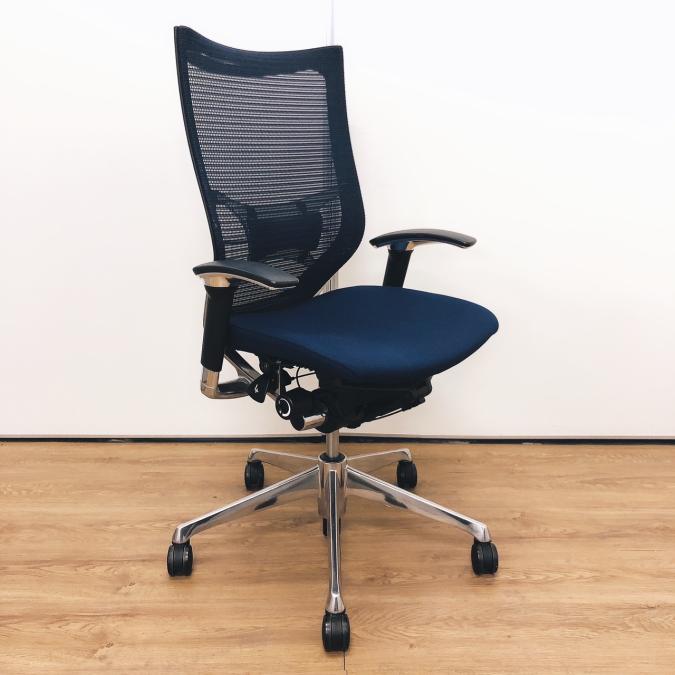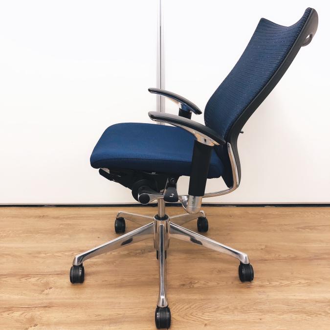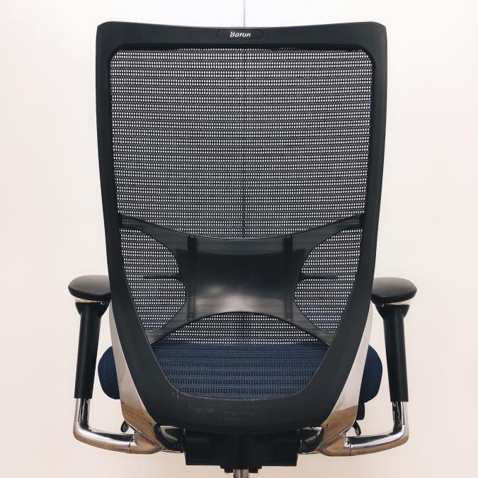 【オフィスの執務室、会議室におすすめ!】■オカムラ(okamura)製 バロン(Baron)チェア 肘付き ハイバック 背面メッシュ ■可動肘 ■ダークブルー × ホワイトシェル【硬めの座面が大人気!国産メッシュチェアの代表格!】【状態良好品!】
