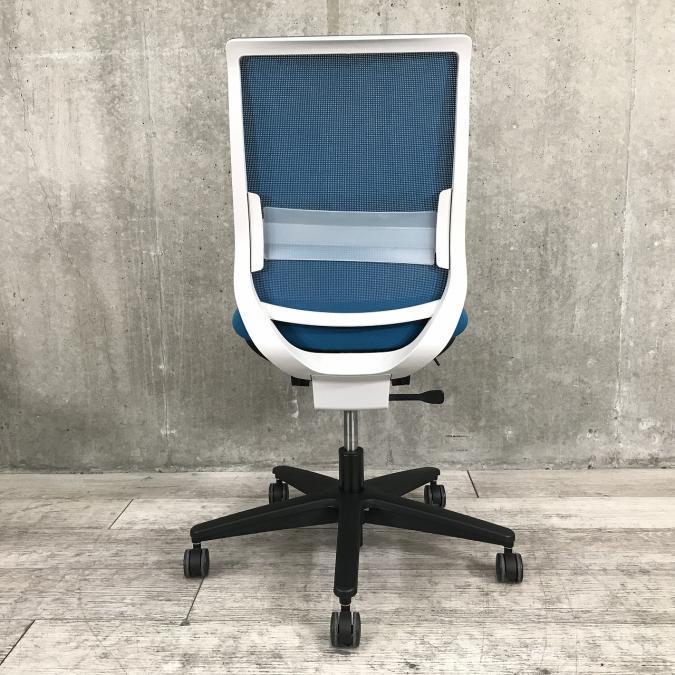★【商品入替のため、残り1脚限り】コクヨ製 ミトラシリーズ ターコイズブルー×ホワイトフレーム メッシュ背面 ランバーサポート付 快適な座り心地と充実機能 肘無しローバックチェア!!