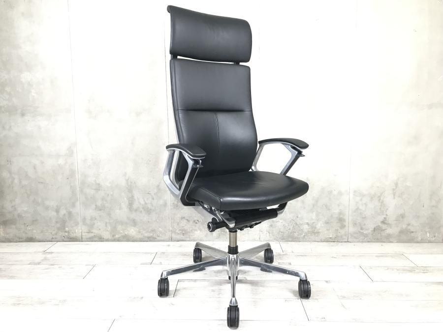 中古ではレアな革張り×ヘッドレスト付き最高級チェア!! ■オカムラ/デューク/ブラック- 立川・八王子店