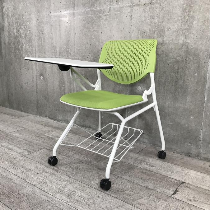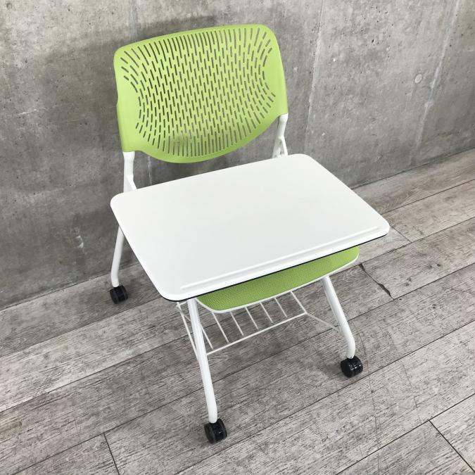 【テーブル付きチェア】明るいグリーン|オカムラ製|ルナ【纏めての利用がおすすめです】【メモ台付】- 茨城南店