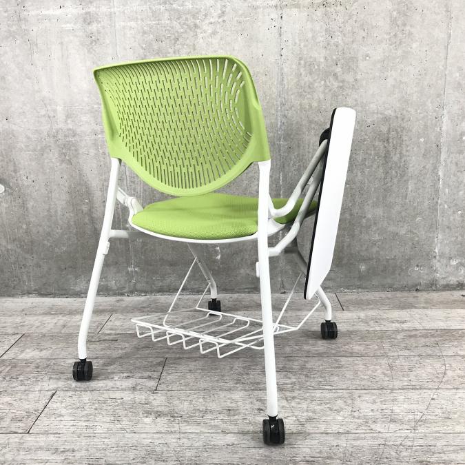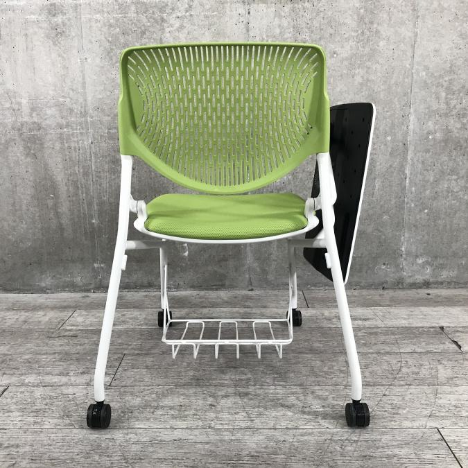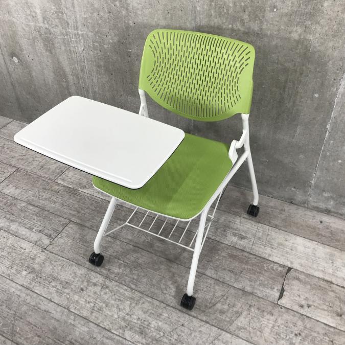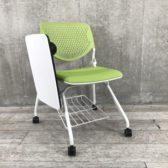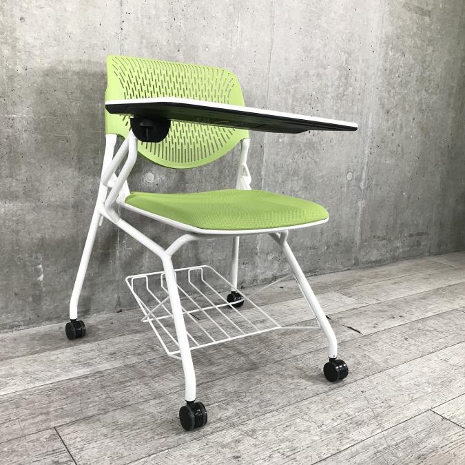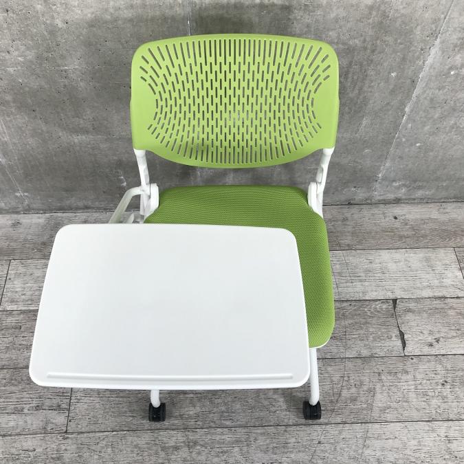 オカムラ製ルナチェア|グリーン|メモ台付|並べての収納タイプ!