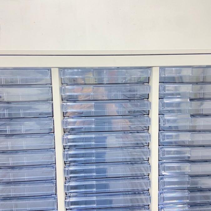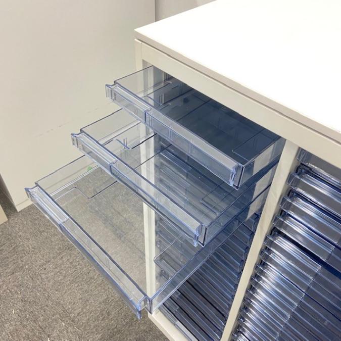 【書類・備品整理の必需品!書類や備品のストックにピッタリ!※1段目のみ浅型仕様】オカムラ レクトライン クリスタルトレー 書類 引き出し 透明 ケース ローキャビネット 整理 中古家具 オフィス家具 福岡 九州最大級《オフィスバスターズ福岡博多店は、福岡を拠点として、日本全国へ中古オフィス用品・オフィス家具を提供しております》