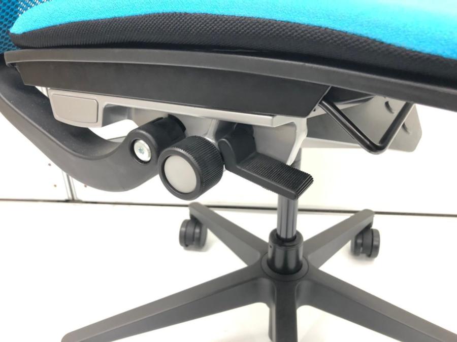 快適な座り心地に不可欠な調節機能である、上下昇降、座面の奥行き調整、リクライニングなどを備えており、操作もわかりやすく好評です。 特に、座面の奥行きは、座面下の左右に通った細いバーで調整でき、座ったままで軽やかに滑るように調整が可能です。 価格面では、新品では高めですが、中古は流通も多く、定価の3割前後の価格で高級チェアの座り心地を手に入れることができます!