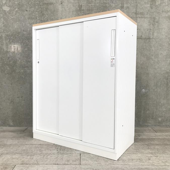 【木目天板付き!人気の引き戸 3枚扉タイプ】コクヨ(KOKUYO)エディア 3枚引違書庫 ■色:ホワイト- 埼玉本店