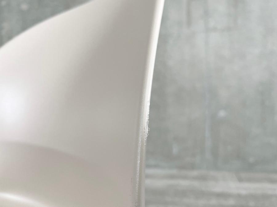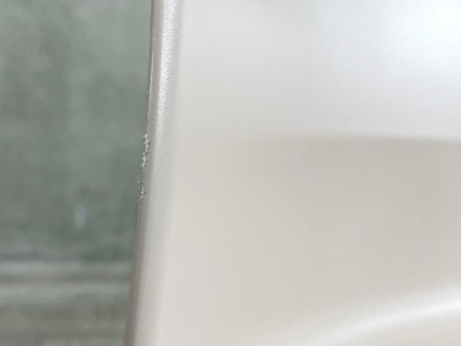- かなり強い濃い黄ばみ・変色が商品全体にある。(例、座面・背もたれ、脚部等にある。)