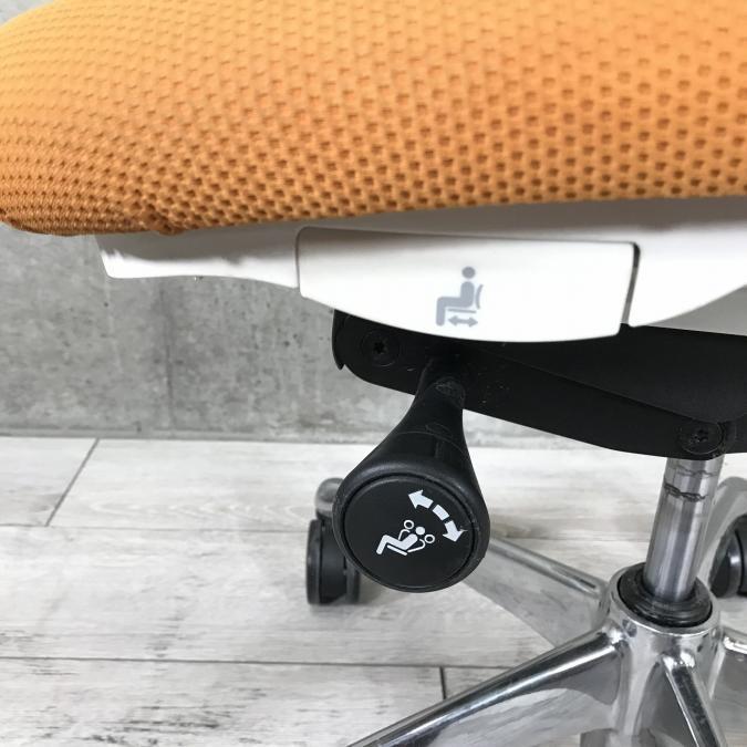 - 座面右下のレバーをスライドさせる「クイックスライドオペレーション」で、リクライニング反力を調整できます。強さの状態が視覚的にわかるため、直感的に操作がおこなえます。