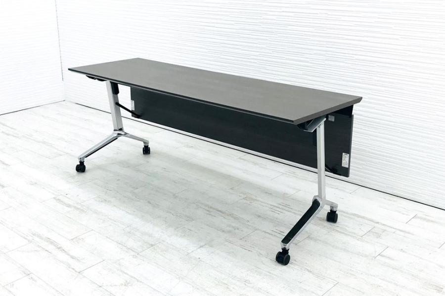 【在庫入替セール(本在庫限定価格)】【美しい木目デザイン!】■コクヨ製 サイドスタックテーブル W1800×D450mm アッシュブラウン 幕板付- 東大阪店