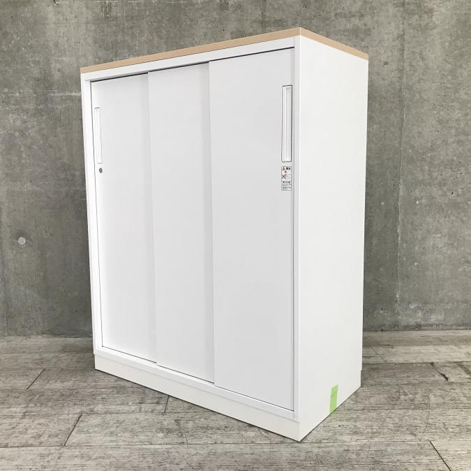 3枚引き戸書庫 コクヨ エディア 鍵付き(シリンダー錠) 天板付き 清潔感のあるホワイトキャビネット 導線を邪魔しないスライド式の扉
