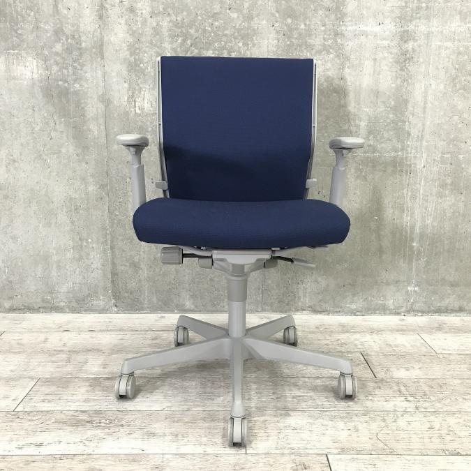 【関西倉庫在庫】■オカムラ(okamura)製 エスクードチェア 肘付ローバックチェア ■ダークブルー×グレーシェル ■デザインアーム ■ランバーサポート 【弊社使用欄:A01029268】