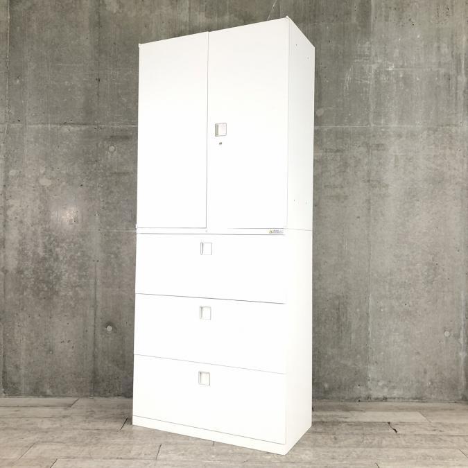 【オフィスの書類をスッキリ整理!大人気レクトラインの上下書庫セット!】■オカムラ(okamura)製 レクトラインシリーズ 両開き+3段ラテラル 書庫セット H2150㎜ ■シリンダー錠 ■ホワイト