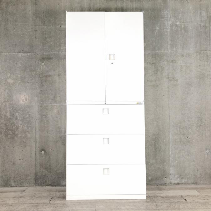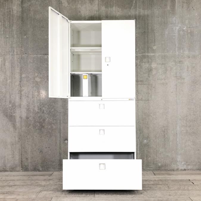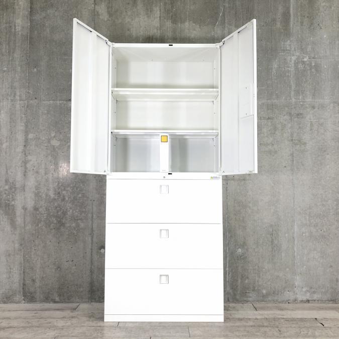 オカムラ レクトライン 3段ラテラル+両開き扉の書庫セット ホワイト シリンダー錠 鍵お付けします 人気商品