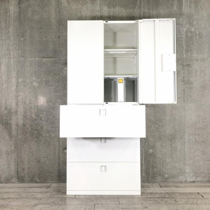 【中古】 レクトライン オカムラ/okamura ハイキャビネット/両開き+3段ラテラル 414017