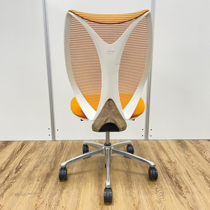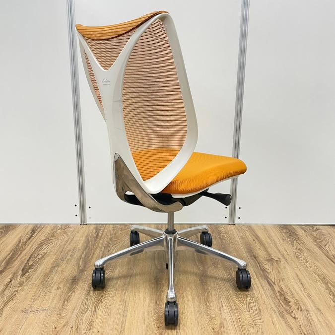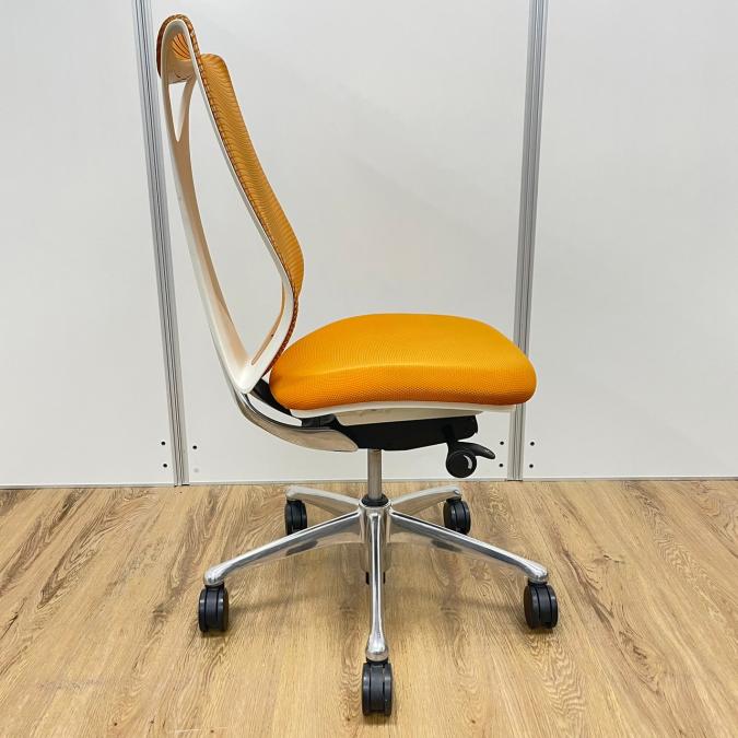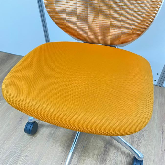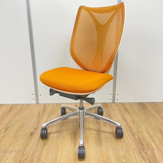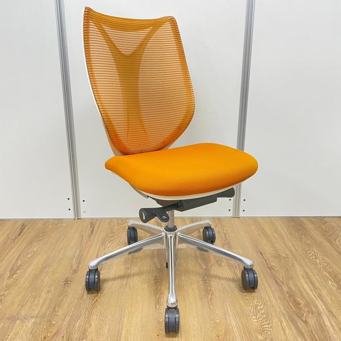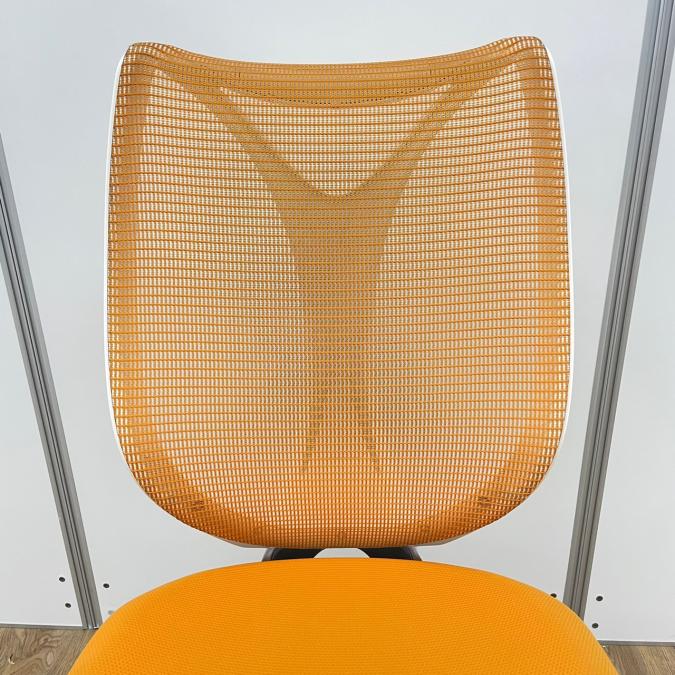 【訳あり品:リクライング機能不可・前傾姿勢も不可】オカムラ製 サブリナシリーズ オレンジカラー 背もたれがの曲線美が特徴的 肘無しハイバックチェア!!※現物画像※保障対象外品になります。サーキュラーバリューCO2削減量の算出について