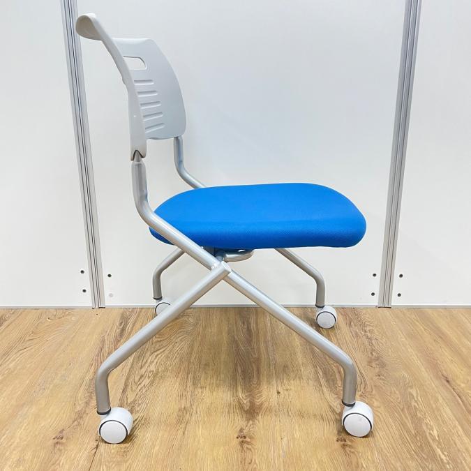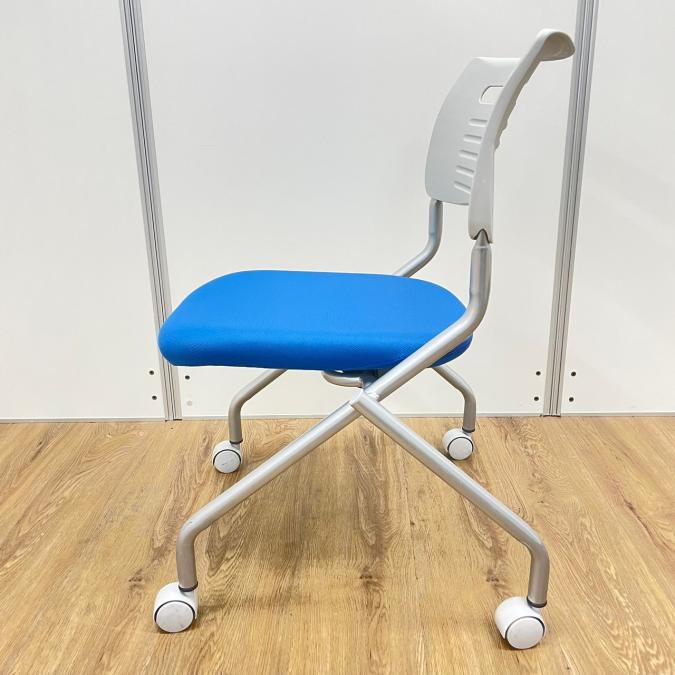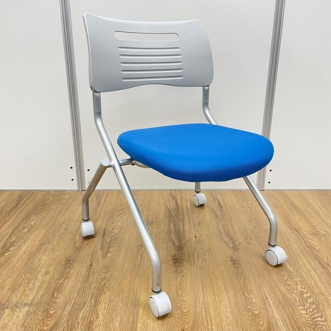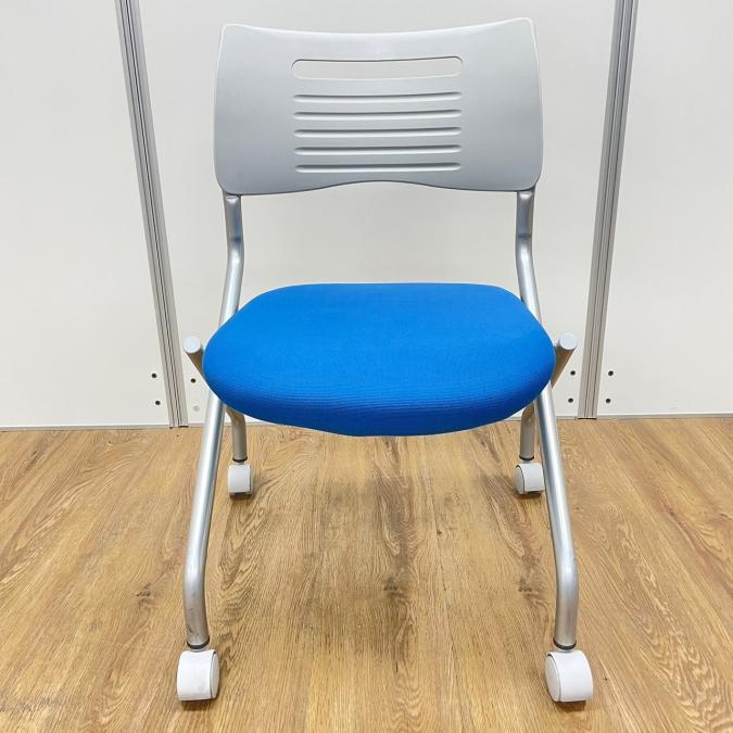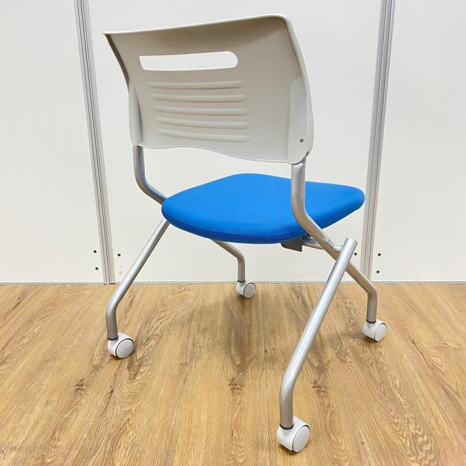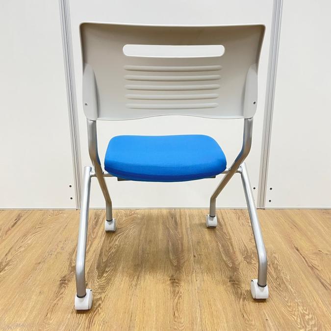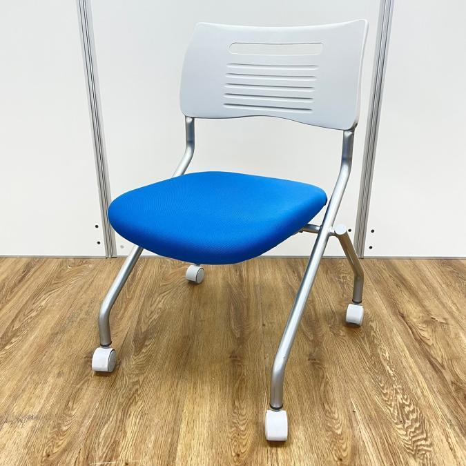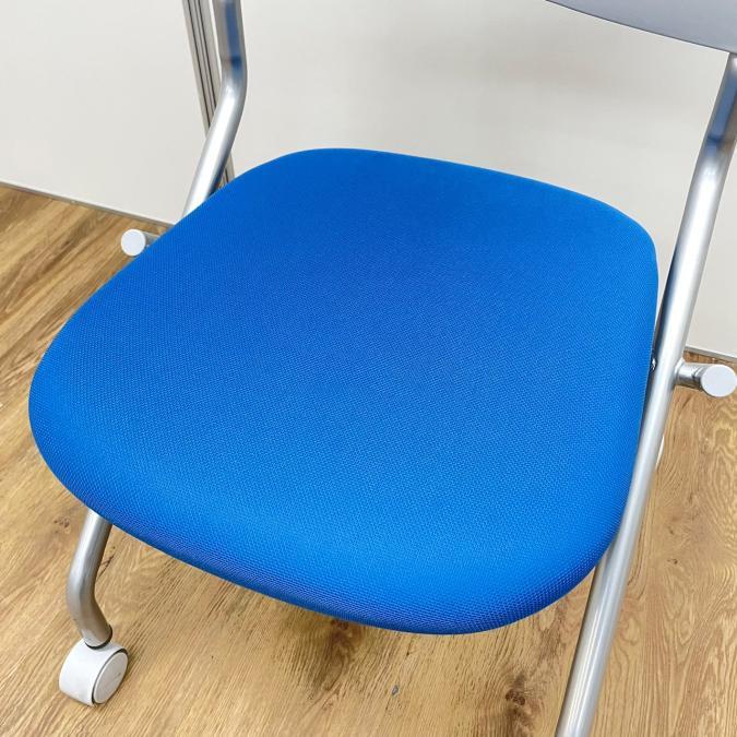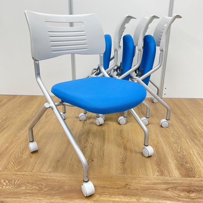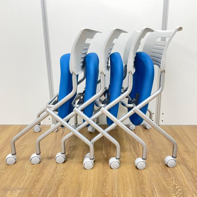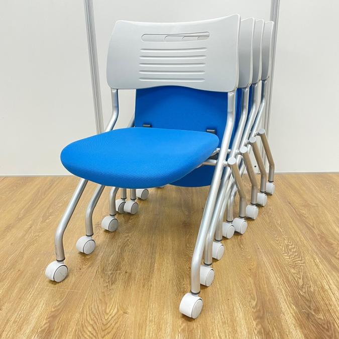 【4脚セット】会議室や休憩室用におすすめ 座面ブルー ネスティングチェア!!- 京都東寺店