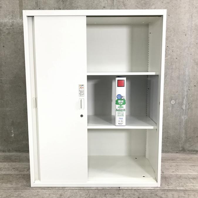 2枚引き戸書庫 オカムラ レクトライン 鍵付き シリンダー錠 ホワイト 天板無し スライド式の扉のため導線を邪魔しません