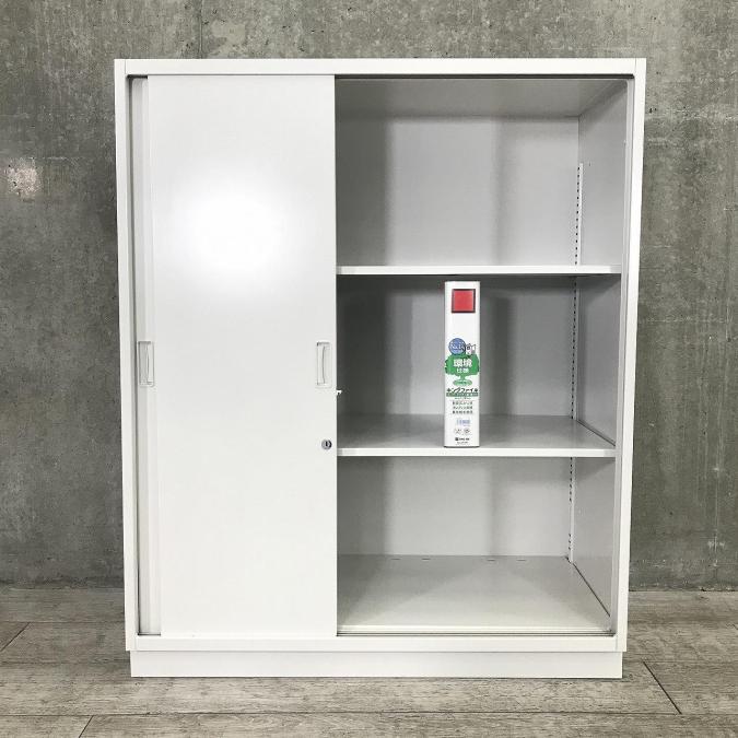 【イトーキ製の開閉スペースを確保した人気のキャビネット!】■3枚引き違いキャビネット ■イトーキ ■シンライン ■幅800mm×奥行き450mm×高さ1100mm 鍵付き書庫 オフィスバスターズ東大阪店