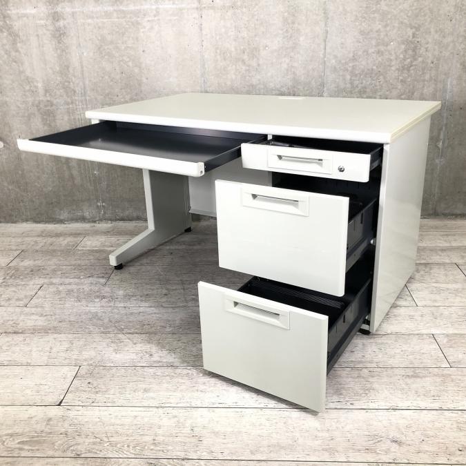 通常のデスクと同じく配線口付き、右三段の引き出しも付いております!