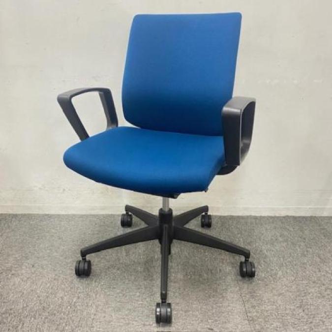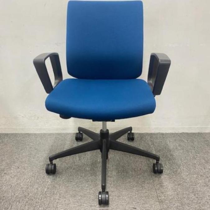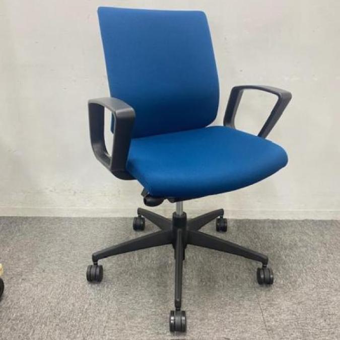 コクヨ ウィザード2 ローバック プルシアンブルー×ブラックフレーム 固定肘付き 使い心地のよい定番シリーズ
