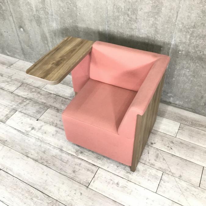 【新品定価:¥255,000】個別用ソファー!テーブル付きでデスクワークや休憩スペースなどのおすすめ!■オリバー製/ピンク色系/テーブル付き- 池袋店