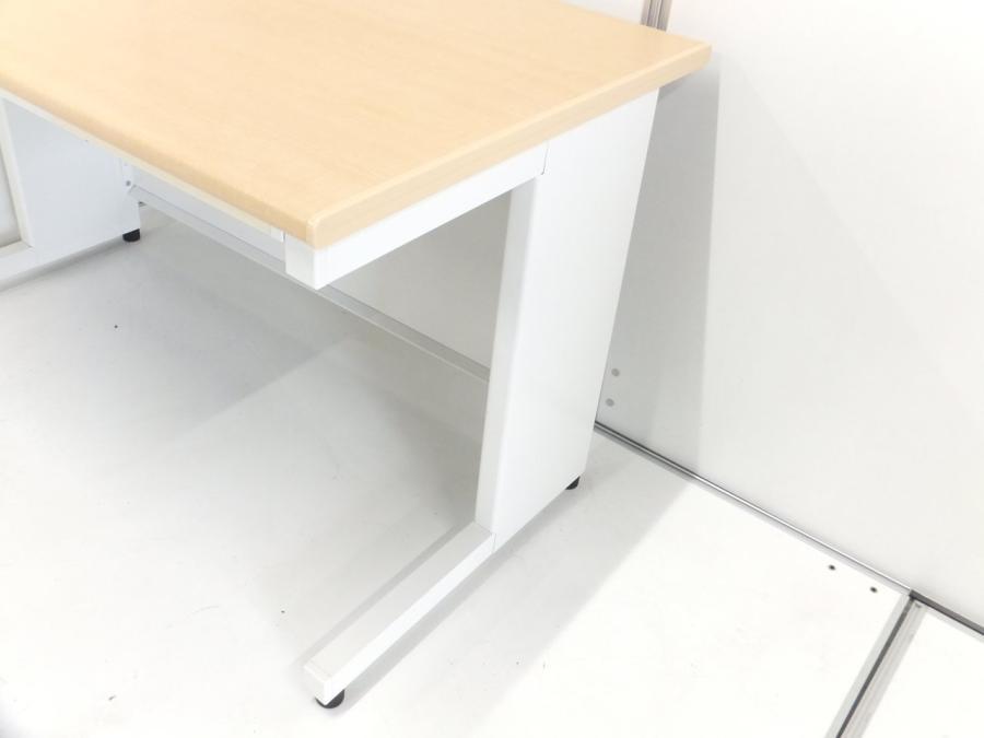 【ベーシックな使いやすさ・ローコストの引き出し付きデスク!】■プラス (PLUS) 製 フラットラインシリーズ 平デスク W1200mm 引き出し付(日焼け有) ■本体:ホワイト 天板:木目ナチュラル(メープル調) 【弊社使用欄:A01040783/A01035962】