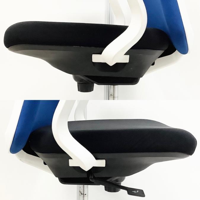 座面下のダイヤル操作により、体型や好みに応じて、背もたれのリクライニング(傾斜)強度の調整が可能です。