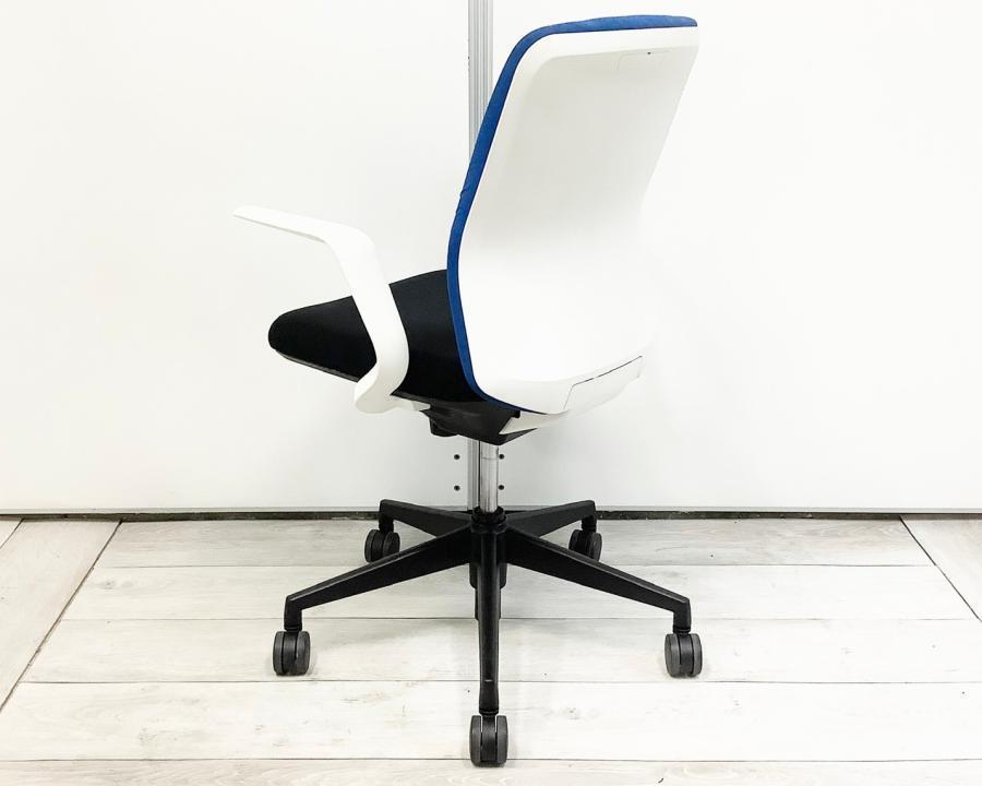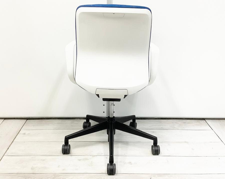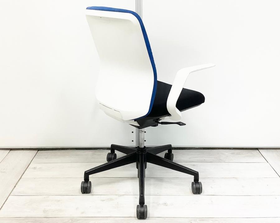 【希少カラーおしゃれなブルー&ホワイトカラー!コスパも良いチェア!】■ウチダ製 カリッサ 肘付 ローバックチェア ■背座面ブルー×肘・脚・シェルホワイト ■固定肘