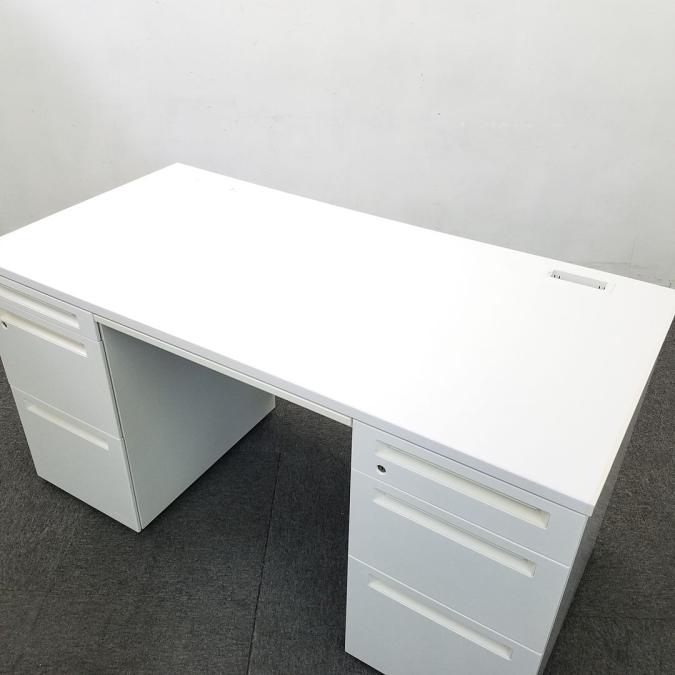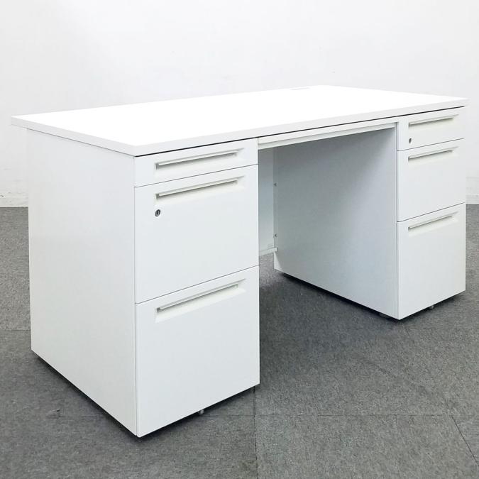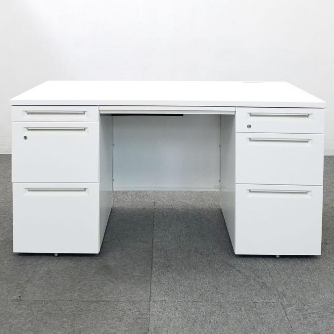 【ハイクオリティデスク入荷!】■オカムラ製 アドバンス-Sシリーズ ■両袖机 W1400mm ホワイト ※一部パーツ欠け有り、取っ手に日焼けあり 【在庫入替】A00849382- 川崎店