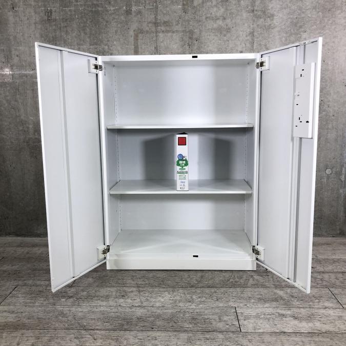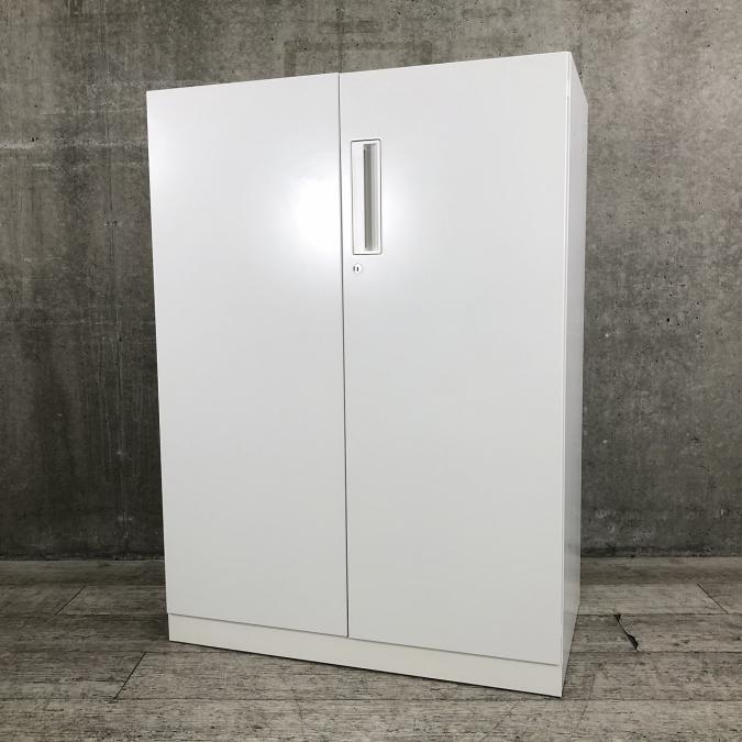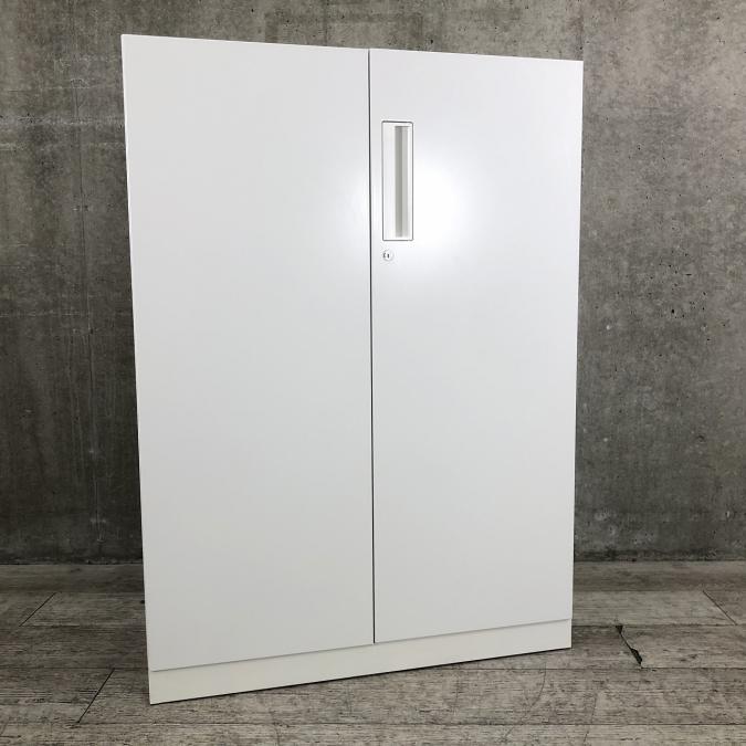 【収納物がひとめで分かる両開き戸タイプ!】■コクヨ(KOKUYO)製 エディア(EDIA)シリーズ 両開き書庫 ローキャビネット H1130㎜ ■天板・ベース付 ■ホワイト ■シリンダー錠【IB】