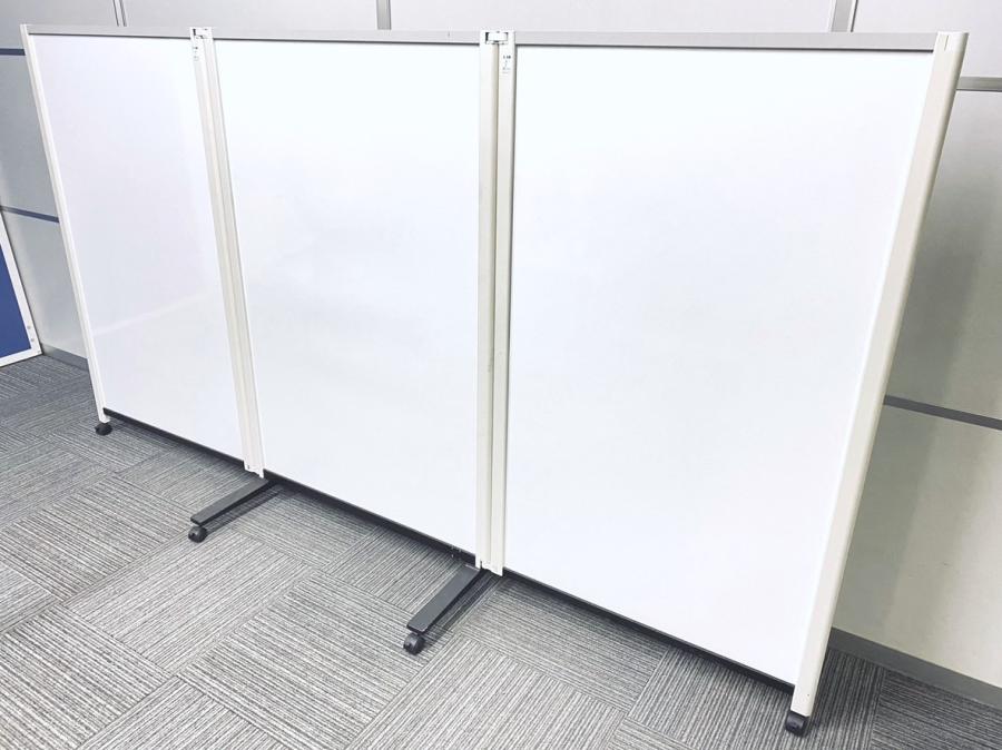 【コレは便利に使えます!】■プラス(PLUS)製 3連ホワイドボード 折りたたみパーティション キャスター付 高さ1500㎜【最大幅2730㎜】- 川崎店