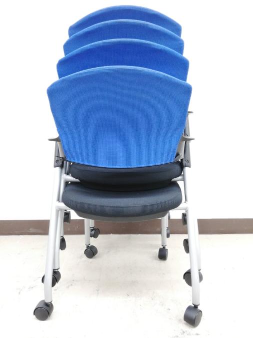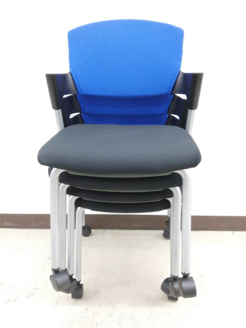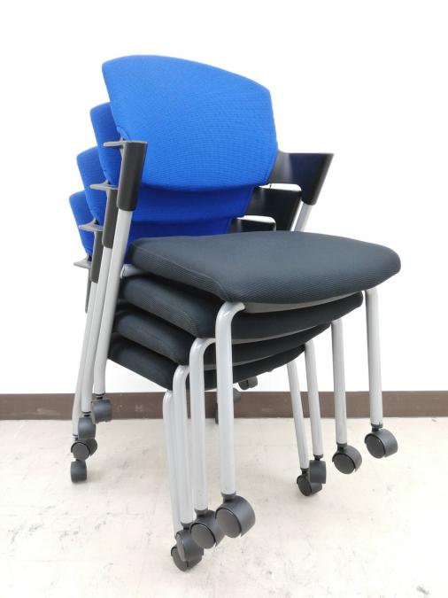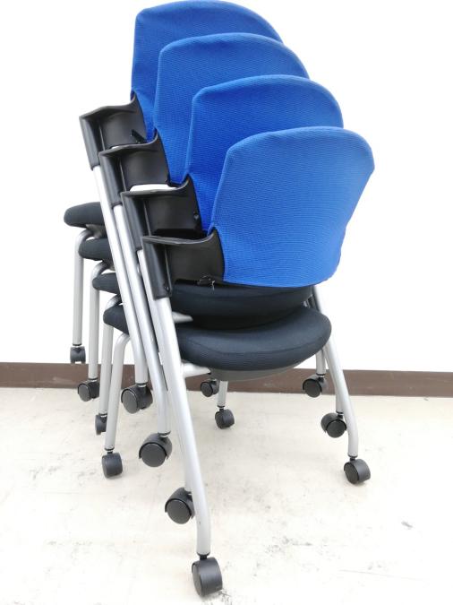 【限定2セット】【セットお買い得】背もたれブルー&座面ブラック!定番スタッキングチェア4脚セット※キャスター付き◆コクヨ製【RP】- 埼玉本店