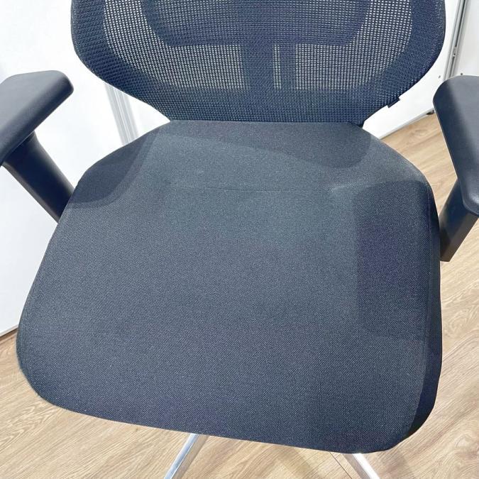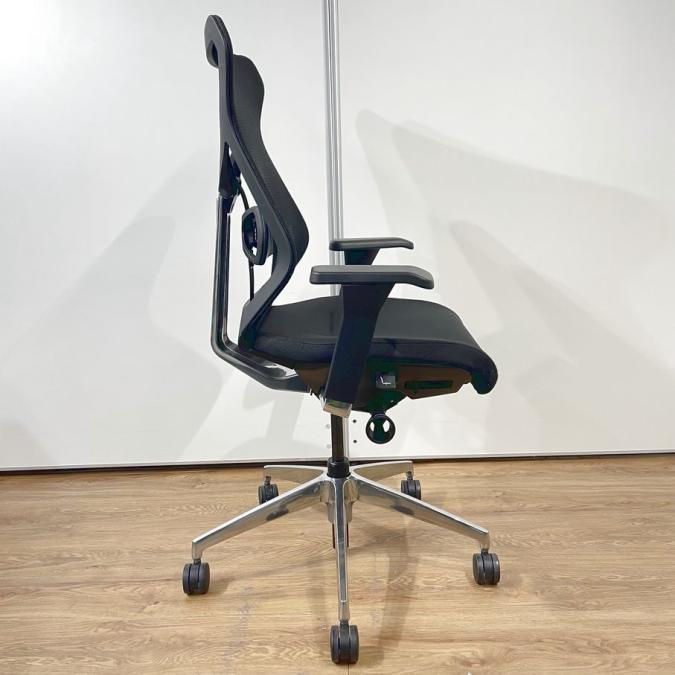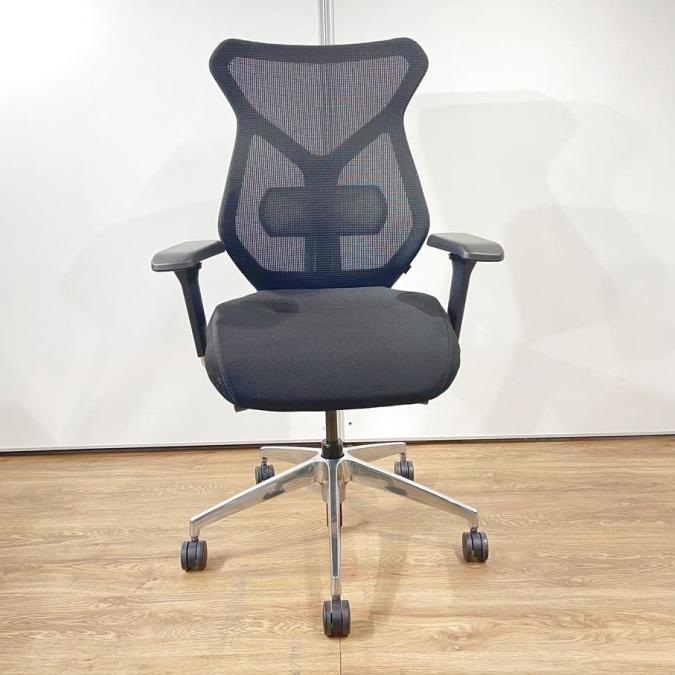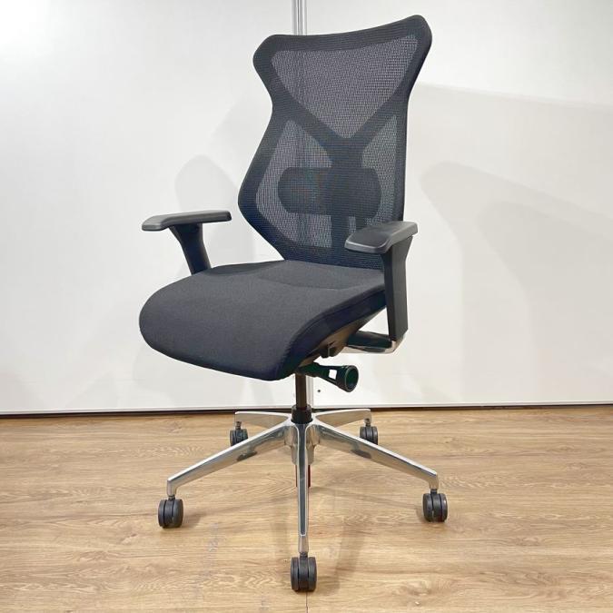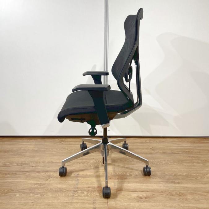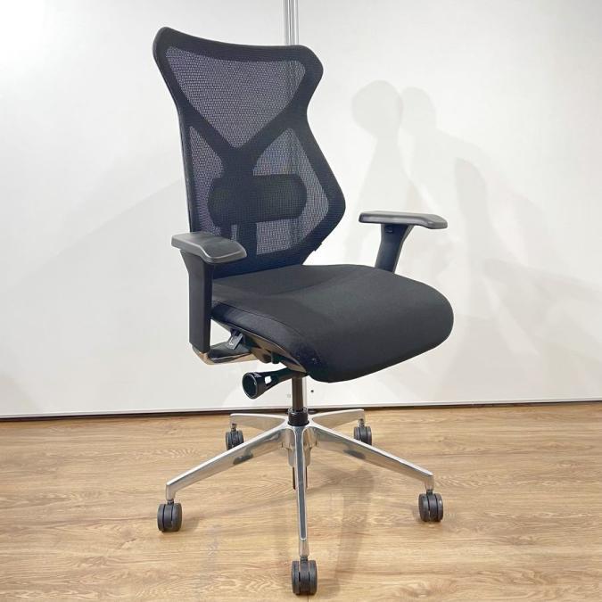【2018年製】イトーキ製 セクア ブラック 肘付き ハイバックチェア 背面メッシュ アルミミラー脚アジャスタブル※可動肘 ランバーサポート・ヘッドレスト付 理想的な姿勢を追求した特徴的なデザイン! 座り心地も快適なハイバックチェアの入荷 肘付きハイバックチェア!!