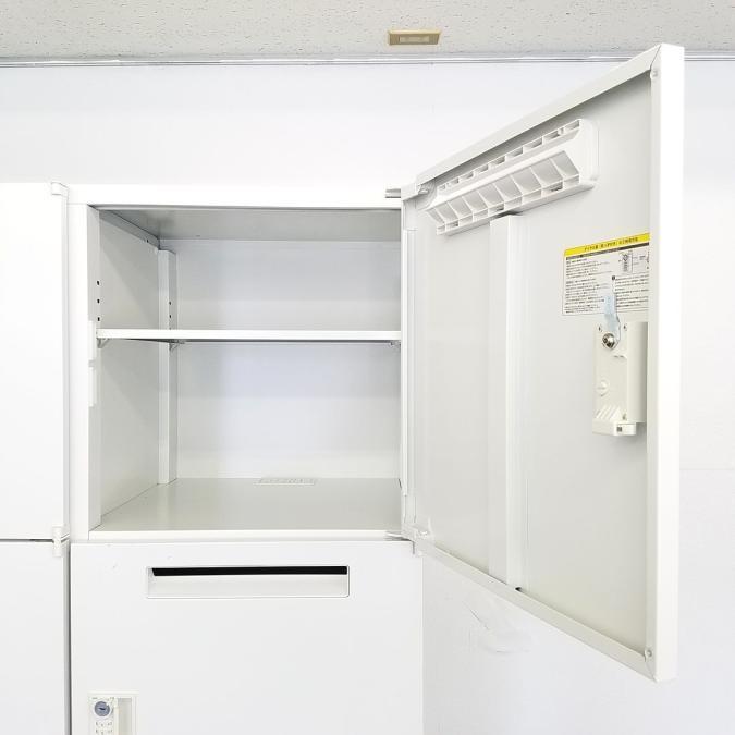 ロッカー内には棚板が一枚ずつ付属し、投函口にあるポストと私物収納を分けて収納可能です。
