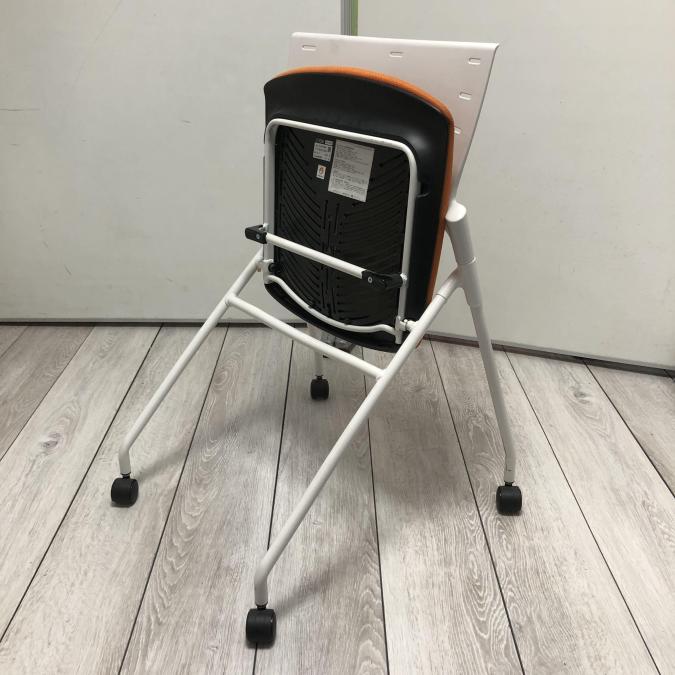 【人気のネスティングチェア!ミーティングスペースに最適!】■イトーキ(ITOKI) マノス(MANOSS) ネスティングチェア ミーティングチェア ■背パッドなし キャスター付き ■アンバーオレンジ×背面ホワイト【入替セールにつき30%OFF!】
