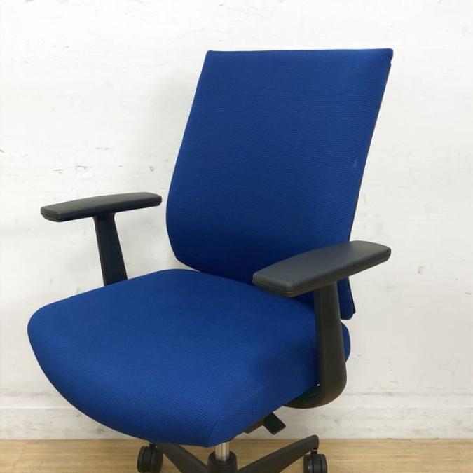 ロングセラー コクヨ ウィザード3 定番のプルシアンブルー色 T字型肘付き ローバックモデル- 名古屋千種店