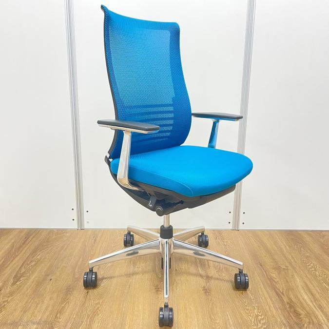 【限定6脚】コクヨ製 ベゼルシリーズ 高級チェア メッシュ ブルー テレワーク 前傾チルト アルミ肘 ランバーサポート ポリッシュ脚 肘付きハイバックチェア!!- なんば日本橋店