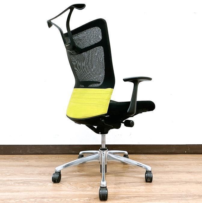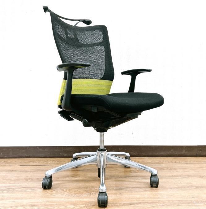 【定価約8万円】【背あてのしなやかな曲線が背中にフィット!】■オカムラ(okamura)製 フィーゴ(feego)チェア ハイバック肘付 ■可動肘/ハンガー付 ■ライムグリーン×ブラックシェル【高機能エルゴノミクスチェア】※肘パッドスレありのため特価