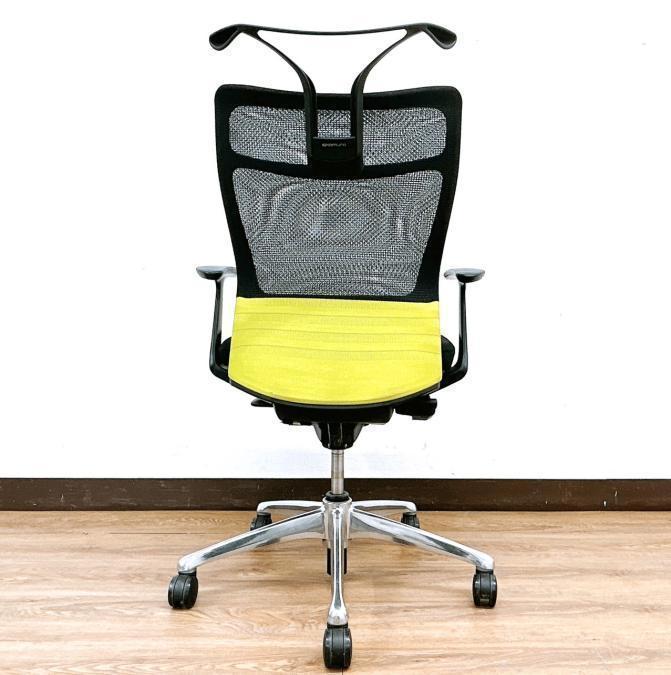 【人間工学に基づいた快適な座り心地!背あてのしなやかな曲線が背中にフィット!】■オカムラ(okamura)製 フィーゴ(feego)チェア ■シームレスタイプ ■可動肘 ■ハイバック ■色:ライムグリーン ※肘パッド劣化のため特価品【AD】
