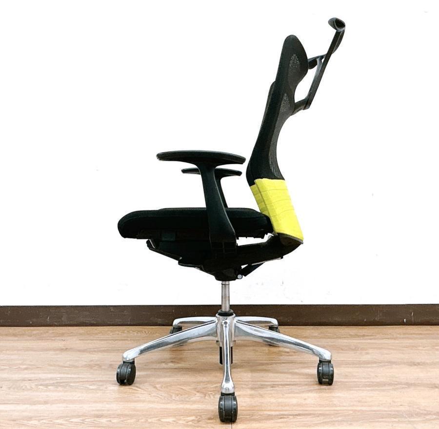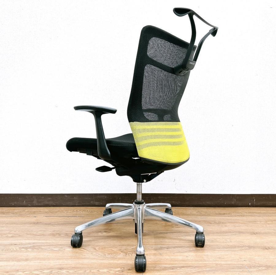 【背あてのしなやかな曲線が背中にフィット!快適な座り心地に高級感のあるデザインが人気!】■オカムラ(okamura)製 フィーゴ(feego)チェア 肘付き ハイバック ■シームレスタイプ ■可動肘 ■ハンガー付き ■ライムグリーン×ブラック【IB】