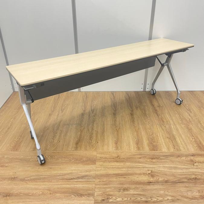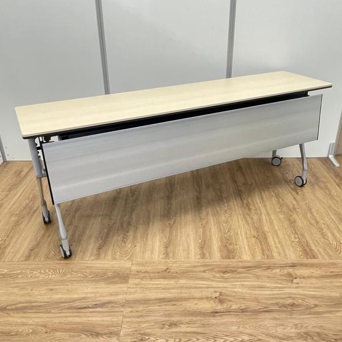 【ロット】オカムラ製 インターアクトシリーズ W1800 ナチュラル天板 幕板付き キャスター サイドスタックテーブル!!- 京都東寺店