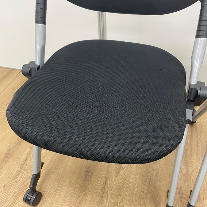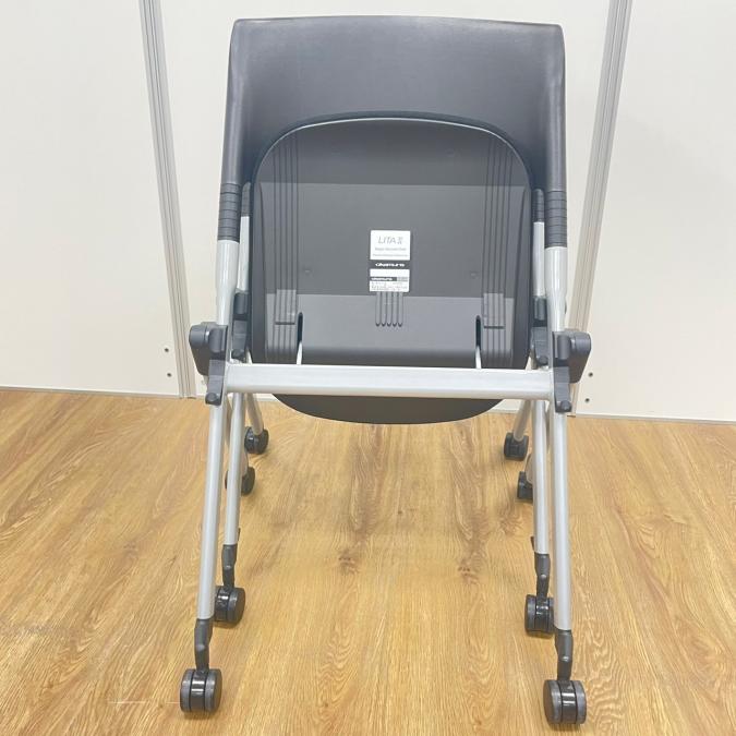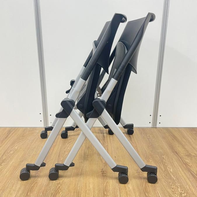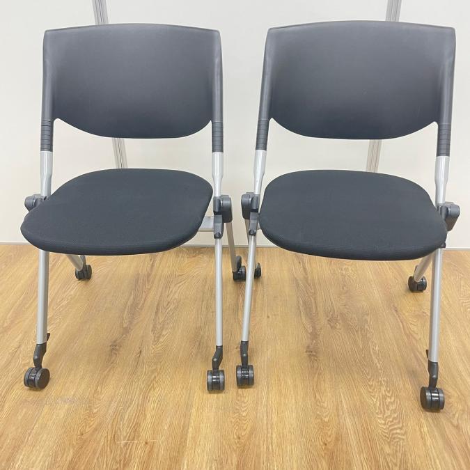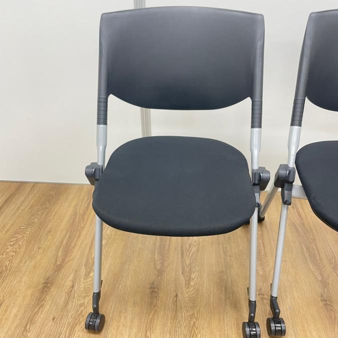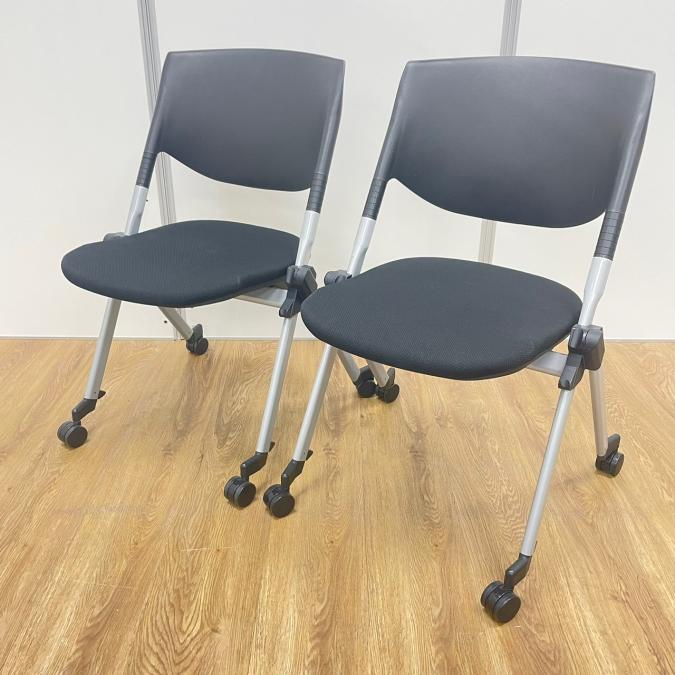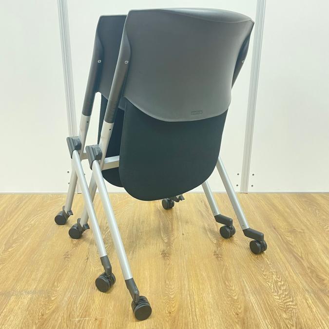 【2脚セット】オカムラ製 リータⅡシリーズ ブラックカラー 水平&垂直2パターン収納が可能 ネスティングチェア!!- 京都東寺店