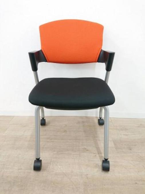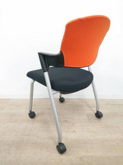 【シンプルスマートなスタッキングチェア!】■コクヨ(KOKUYO) プロッティ(Protty)チェア スタッキングチェア ミーティングチェア ■肘付き キャスター付き ■オレンジ【2505】弊社使用欄【A01018053】
