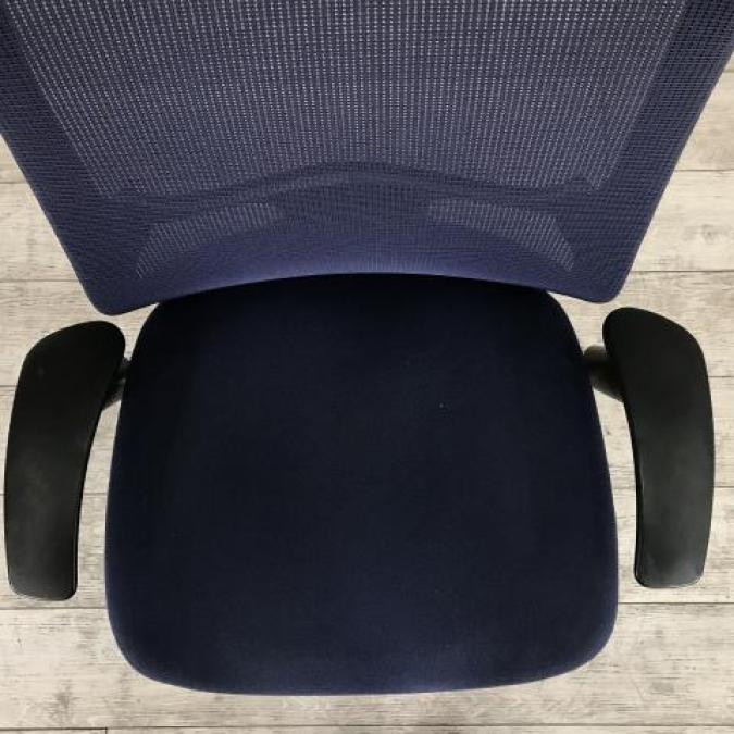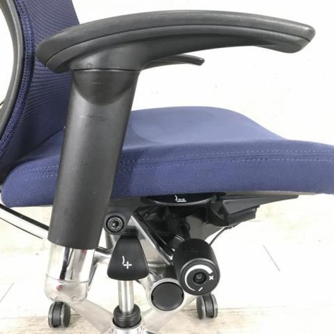 【1脚限定の為、クレジット決済優先】【早い者勝ちです!】【ワンランク上の高品質グレード!人間工学に基づいた快適な座り心地と一体感!】■オカムラ(okamura) ゼファー(Zephyr) 肘付き ハイバック ■可動肘 ■背面メッシュ ■ブルー ■オフィスバスターズ心斎橋店