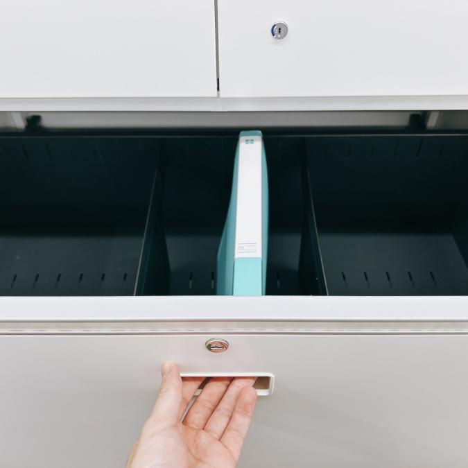 致しますので、上の段と下の段の書庫を連結、耐震強度が高くお使いいただけます。