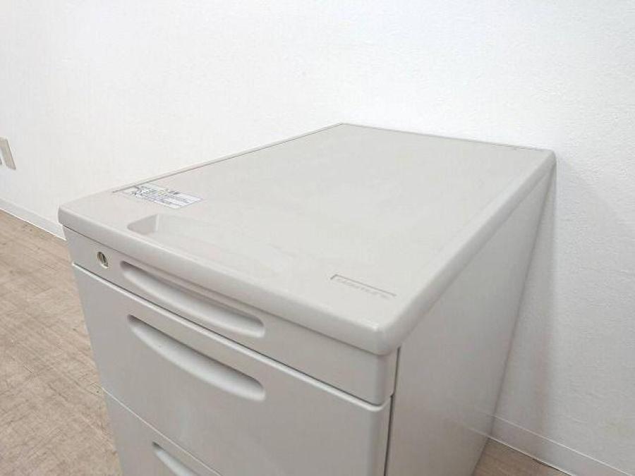 【大人気オカムラ製3段デスクワゴン!天板の把手とキャスターで移動がらくらく!デスク下に置いて収納力アップ!】■オカムラ(okamura)製 SDシリーズ 3段ワゴン デスクインワゴン H610㎜ ■ニューグレー ■シリンダー錠