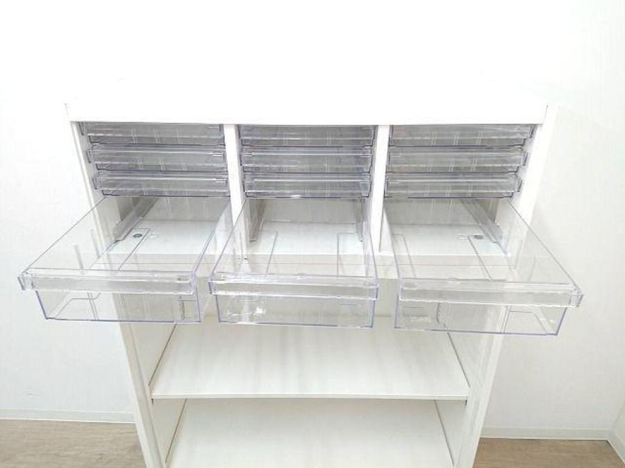 - 一部不具合ありそ引出の開閉不可、施錠不可、棚板無しといったの書庫の本来の効用を果たすための機能以外の一部が使用不可(例、扉、引出の開閉がしづらいなどがある。 )