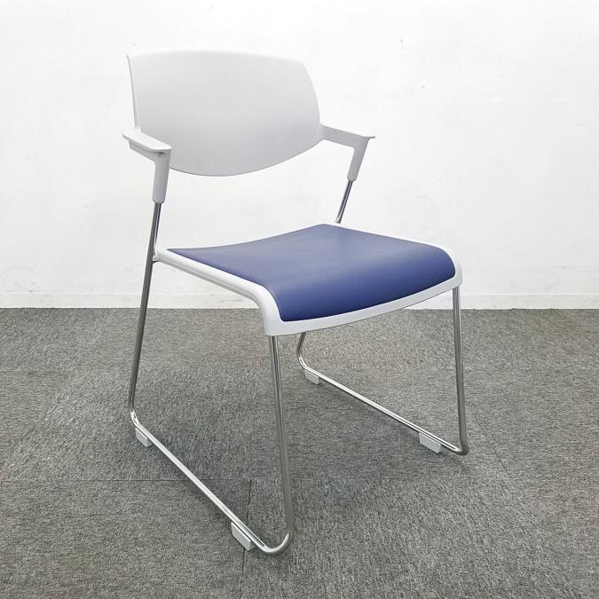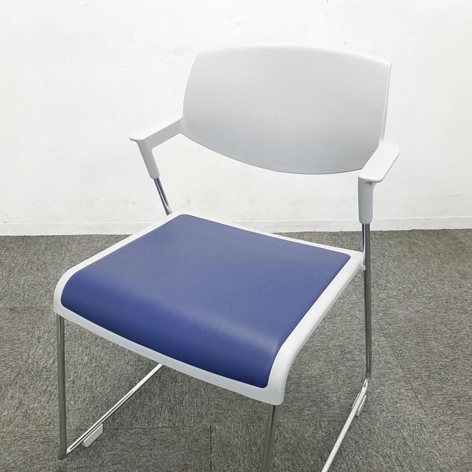 【肘一体型のシェルが身体への負担を軽減!】■コクヨ(KOKUYO)製 サティオ(Satio)シリーズ 肘付 スタッキングチェア 会議用 ■背カバータイプ ■ブルー×ブラックシェル