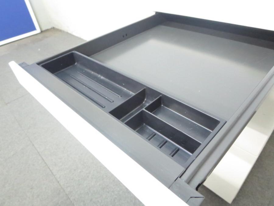 【正面に取っ手が無いフラットなデザイン!キャスター付でレイアウト変更がスムーズ!】■オカムラ(okamura)製 プロユニットシリーズ 3段ワゴン フリアド用ワゴン H650㎜ ■ホワイト ■シリンダー錠 ※キズ・塗装剝がれ有【弊社使用欄:A01042240】